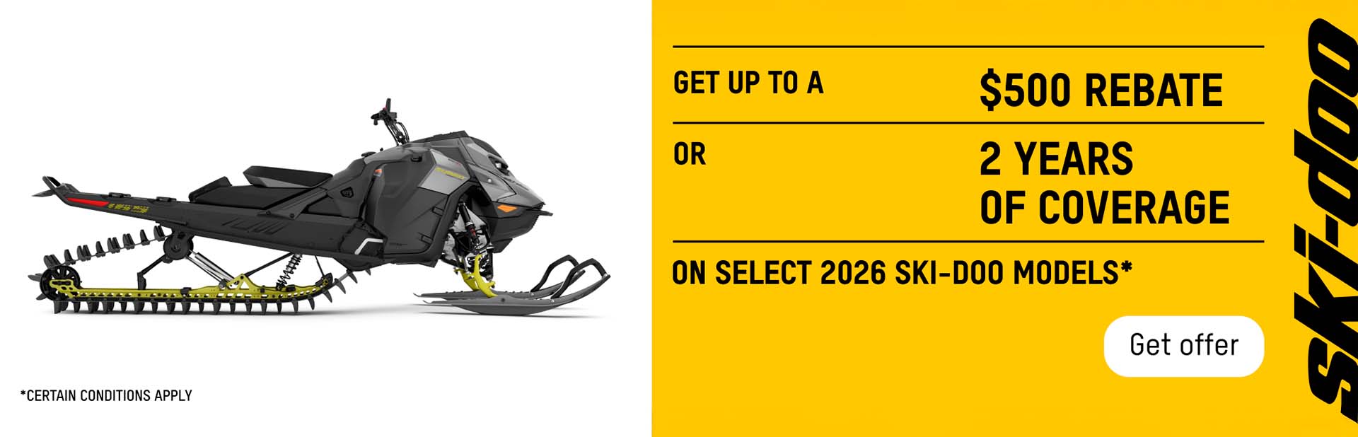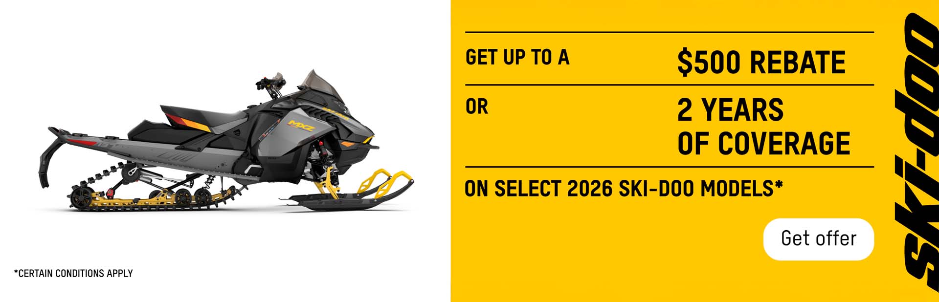 Get up to $500 or 2 years of coverage on select 2026 Ski-Doo models